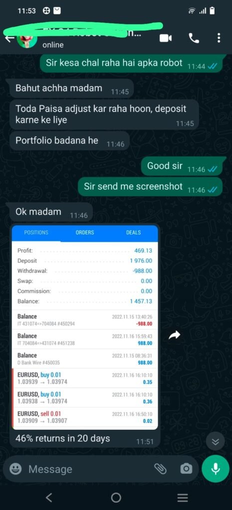 Sir mujhe sirf one week me hi 45% ka return diya hai mere $1000 ke account par